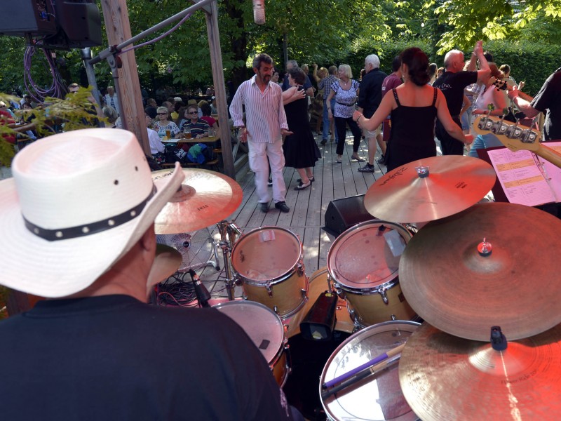 Donnerstag und Sonntag spielt dort immer eine Live-Band (von Rock´n´Roll bis Swing...), die vielen Kastanien bieten sehr viele schattige Tische.